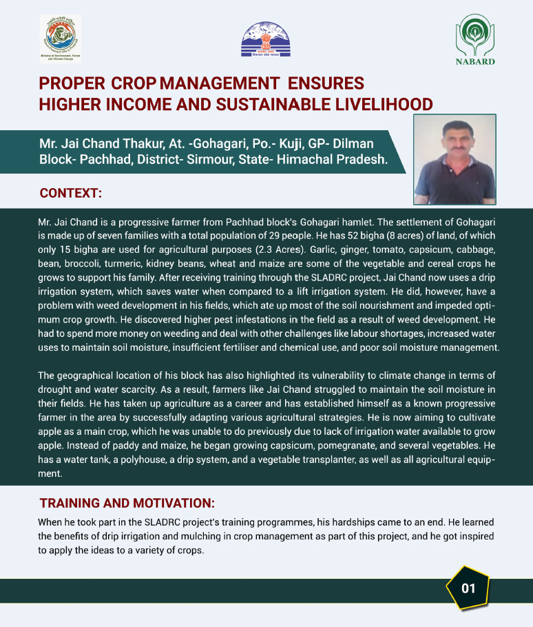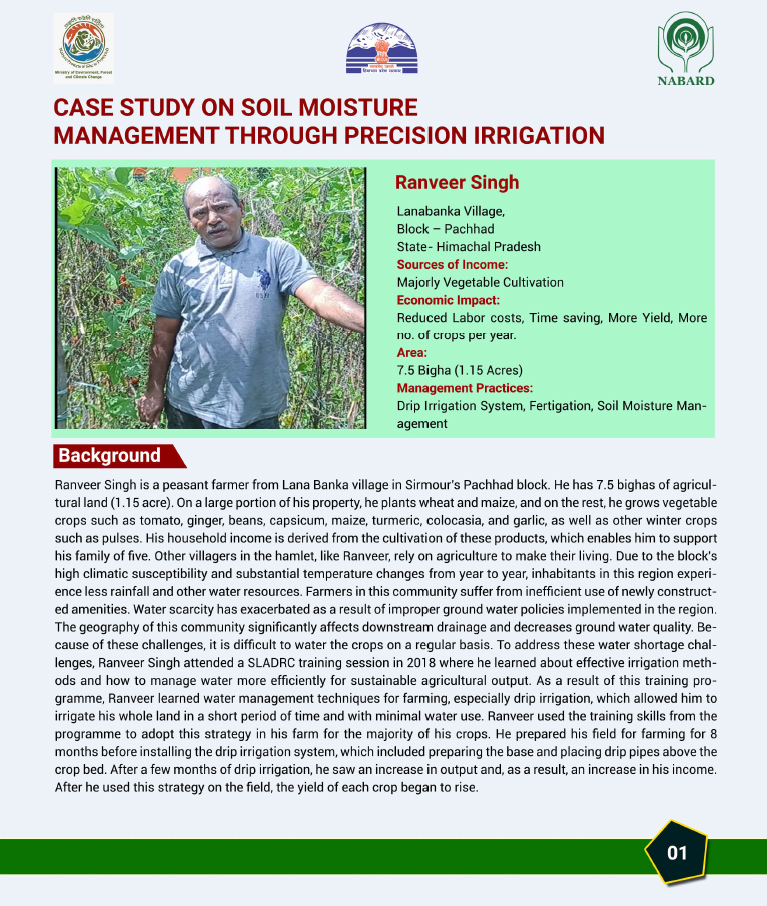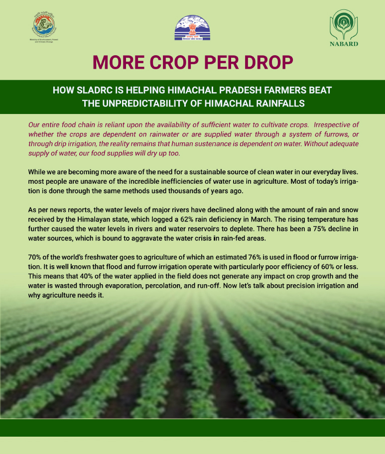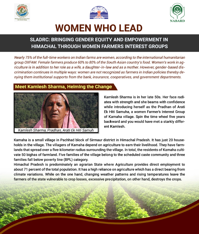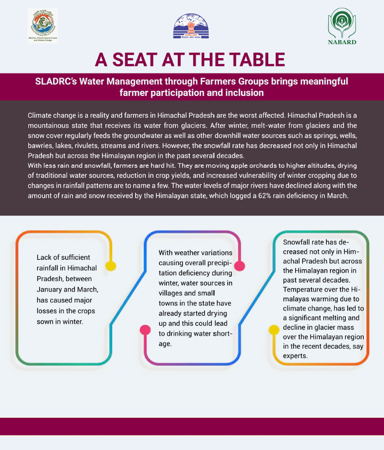 Climate change threatens water resources, ecosystems, and rural livelihoods in Himachal Pradesh, with Sirmour district particularly vulnerable due to recurring droughts and water stress. With support from the National Adaptation Fund, Ministry of Environment, Forest & Climate Change, Government of India, the State Department of Environment, Science Technology & Climate Change, implemented a long-term programme promoting Climate Smart farming and social interventions. The initiative particularly targeted small and marginal farmers, including rural women, with the objective of reducing climate vulnerability and enhancing resilience.